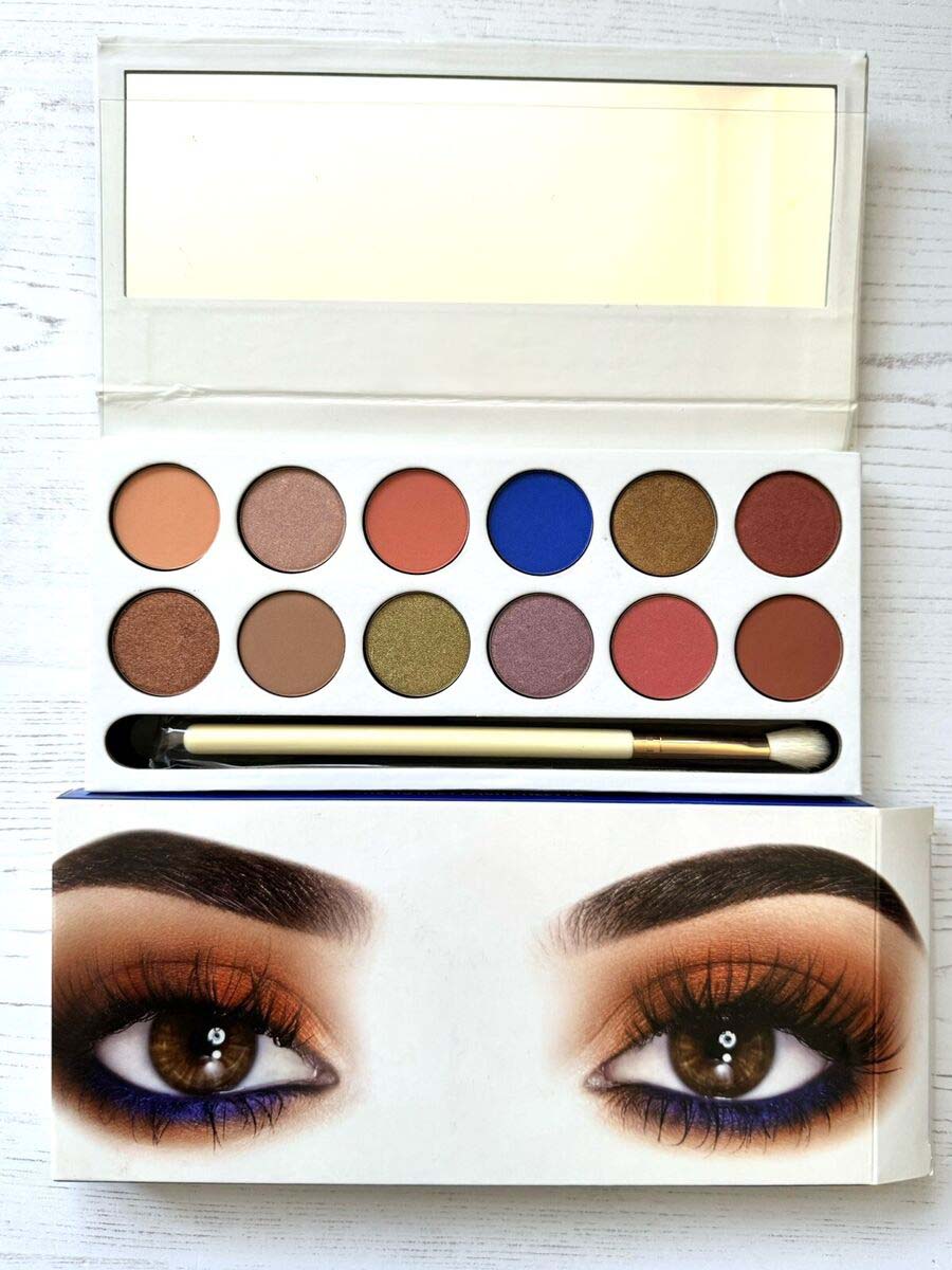 Paleta De Sombras 12 Tonos Durazno + Espejo y Brocha